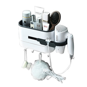 Hair Dryer Holder Set Bathroom Wall Mounted Toothbrush Comb Storage White Rack
