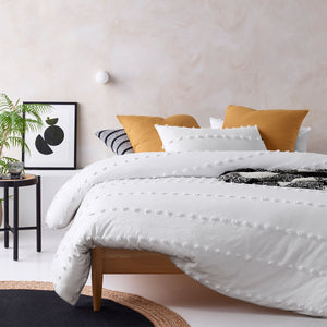 Vintage Design Homewares Luca White Cotton Quilt Cover Set Queen