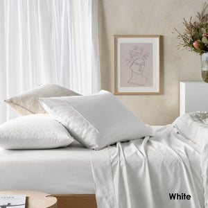 Vintage Design Homewares 225TC Cotton Eucalyptus Sheet Sets White King