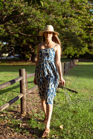 Cotton Midi Dress - Inayat Indigo Strappy Fitted Midi dress (Hand block print)