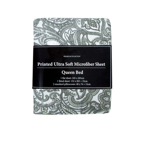 Printed Microfiber Sheet Set Single Grey Paisley