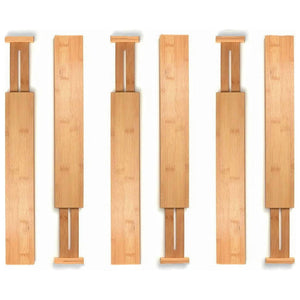 Gominimo Bamboo Drawer Dividers 44-55cm Premium Anti-Slip Rubber Pad 6 Set