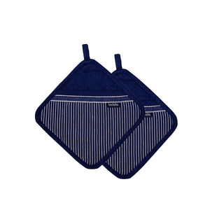 Ladelle Butcher Stripe Series Navy Set of 2 Pot Holders 17.5 x 24.5cm