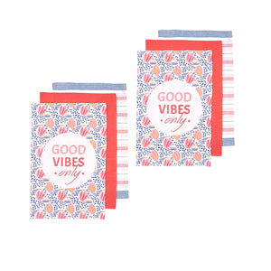 Ladelle Set of 6 Arise Good Vibes Tea Towels Pink