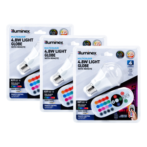 illuminex 6PCE 4.8W Edison Screw LED RGB/Warm White Globe Remote Controlled