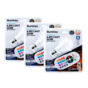 illuminex 6PCE 4.8W Bayonet Cap LED RGB/Warm White Globe Remote Controlled