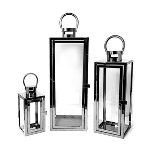 Floor Lantern Set of 3 Candle Holder Stainless Steel SQ Silver