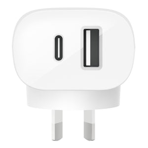 BELKIN BOOST CHARGE Dual Wall Charger with PPS 37W - White (WCB007auWH), Two device charging: USB C + USB A can charge two phones at the same time